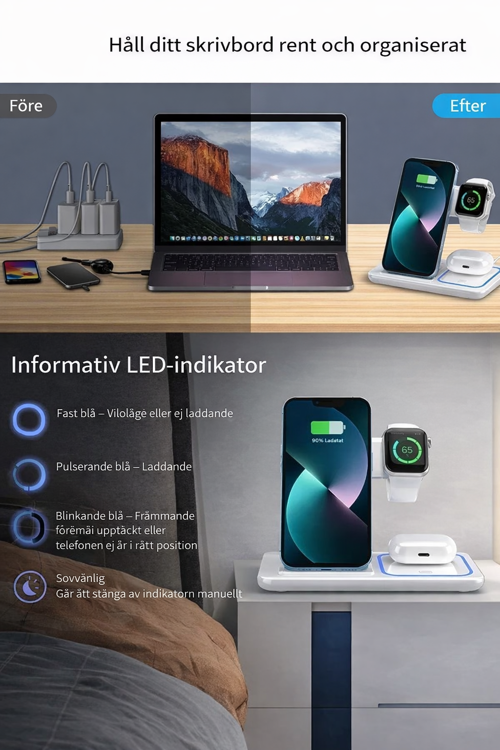 • 1 × 3-i-1 trådlös laddstation
