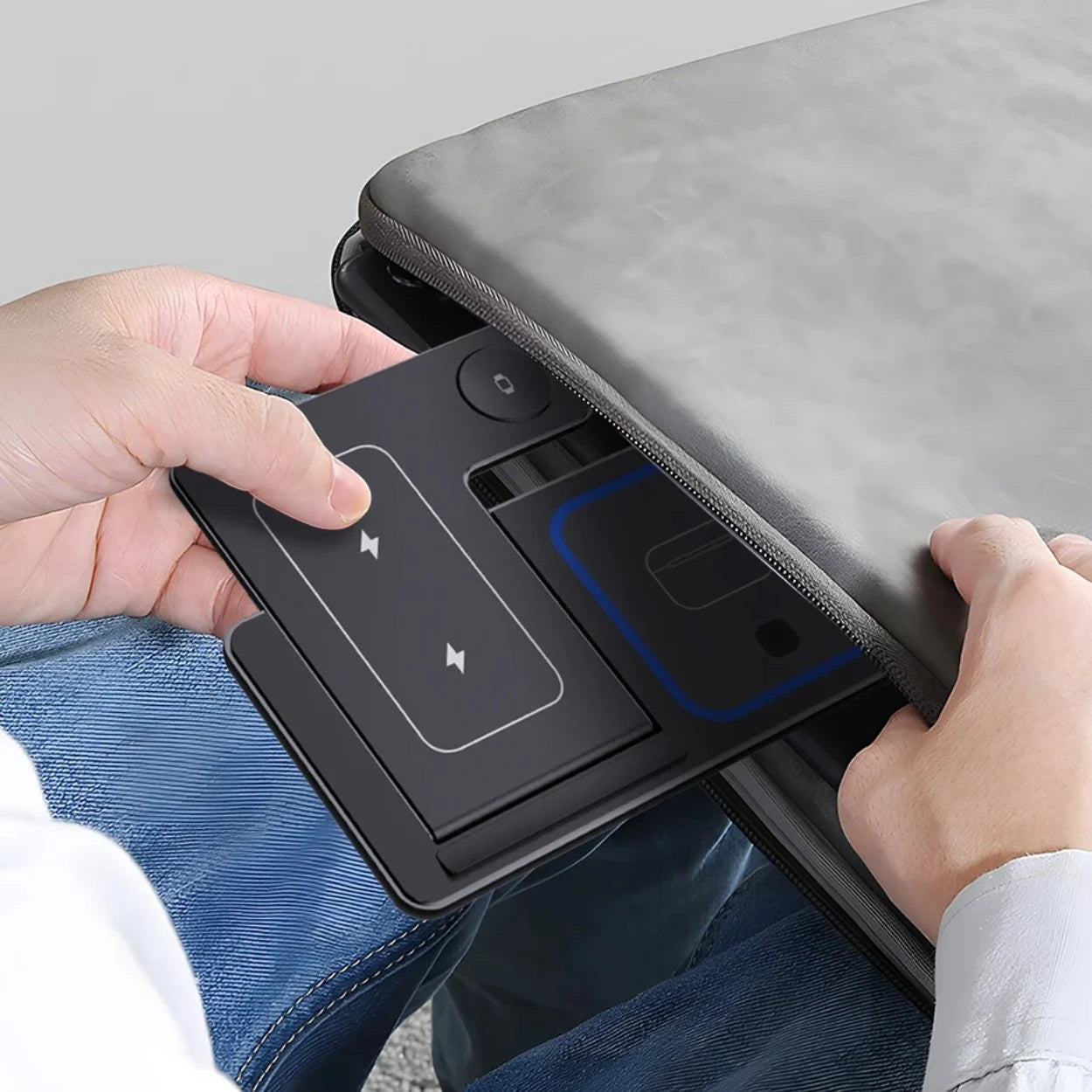 Laddstationen fungerar också som ett praktiskt mobilställ.